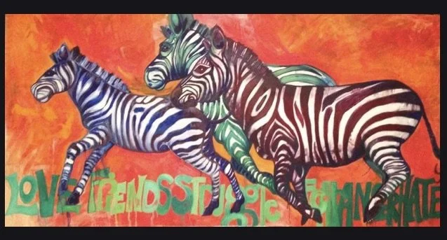 Zebra, (Mother and Baby), 3 x 56 Feet, oil on canvas, $3,500